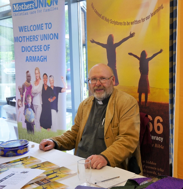 Image: Dean Paul Mooney selling stoles and Route 66 books at the General Synod this May.