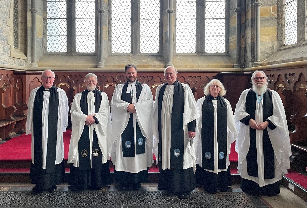 Canon Jones was supported at his installation by a large number of friends and parishioners from the Kiltegan Union of Parishes. Photo below – l-r: The Reverend Robert Stotesbury, The Reverend Canon Robert Jones, Dean of Ossory, The Very Reverend Stephen Farrell, The Venerable Ruth Elmes (Registrar) and The Reverend Dr Canon Richard Marsh (Bishop’s Vicar) in St Canice’s Cathedral last Sunday.