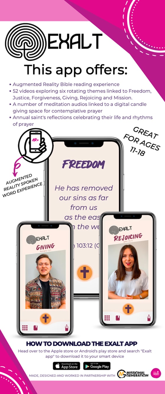One of the new features allows users to share their experience of the Bible verse into their digital spaces, strengthening the young person’s confidence in sharing the Christian faith and Scripture amongst their digital platforms. Exalt is available from either the Apple Store or Google Play and to find out more, readers are welcome to check out its promotional video at https://vimeo.com/726774098