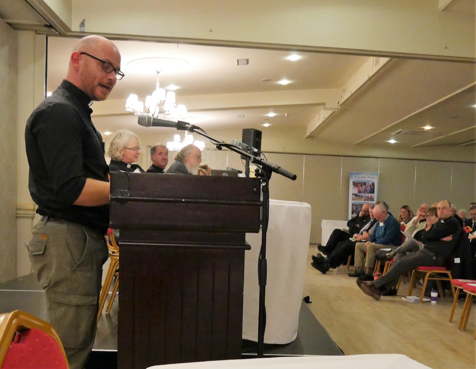 Monsignor Brendan Byrne, addressing synod before dinner, brought good wishes and prayers from the Most Reverend Denis Nulty, Bishop of Ossory. The Reverend Alec Brown also brought greetings from the Diocese of Sodor and Man. Cathaoirleach of Carlow County Council, Councillor John Pender also wished the Synod well as it began.