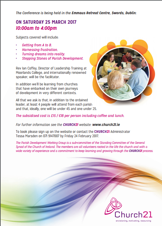 A Parish Development Conference is being held in the Emmaus Retreat Centre, Swords, Dublin on Saturday 25th March 2017