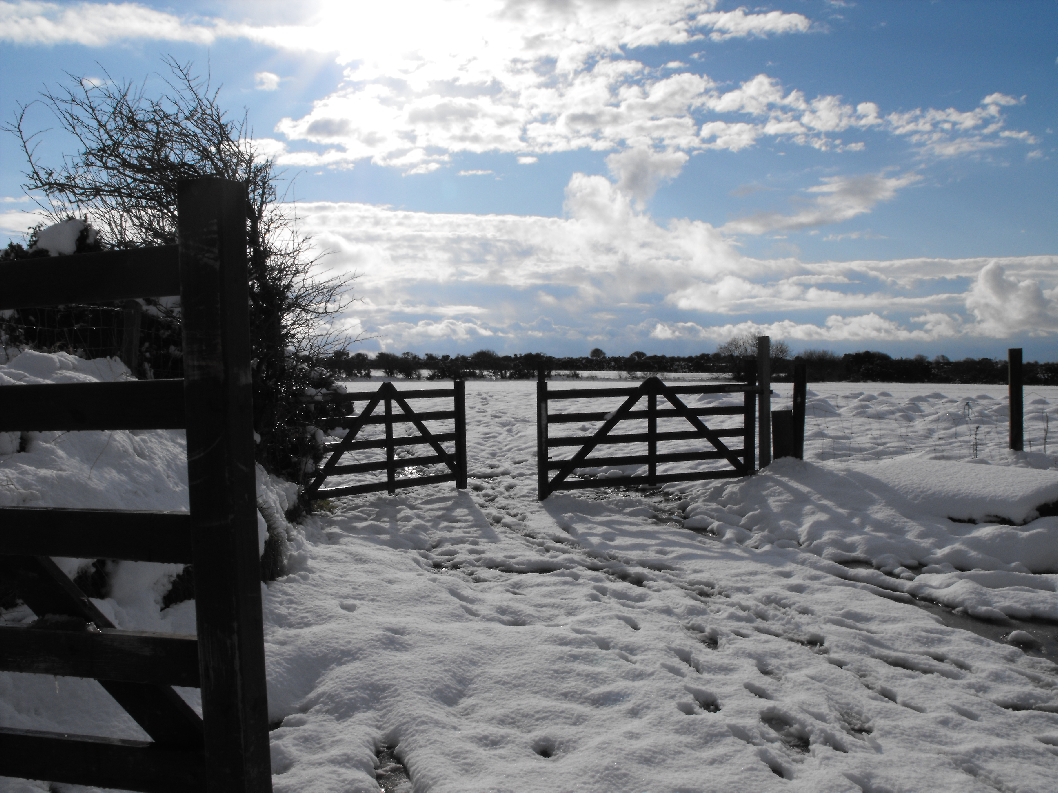 The photo above shows a snowbound farm yesterday and the reason why the DCO wasn’t going anywhere for a while! The central area is our lane way where snow reached the tops of the ditches and as I write is still hugging them over half way up. An alternative gap way has since been made at a road ditch in order to get out to get fodder for animals today and we can now reach a car that has been moved across the road (before the field turns into a bog with the thaw) by donning wellies and splashing forth.