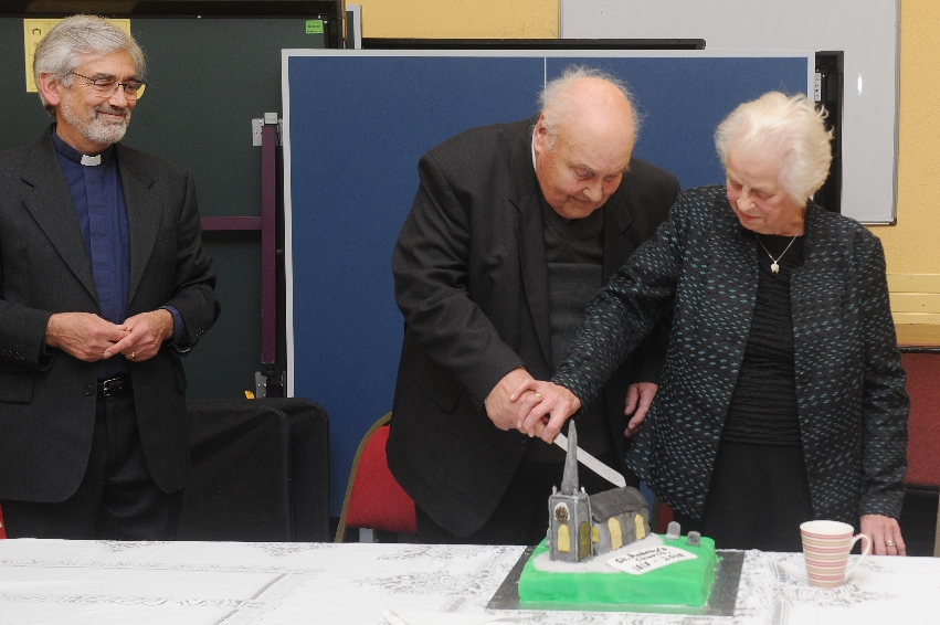 Refreshments were served in the Parochial Hall afterwards and a 200th Anniversary cake in the form of a model of St Andrew’s was cut by the parish’s oldest member, Tom McClean, and his wife, Gladys.