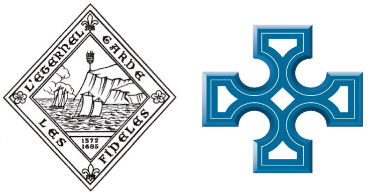 The logo of the Huguenot Society of Great Britain and Ireland with the Church of Ireland cross.